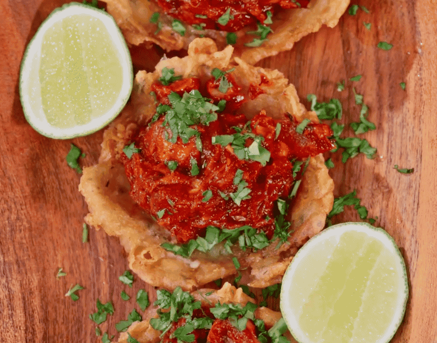 Prepare Iberia Bacalaitos Codfish Fritter Mix according to package instructions. Fry spoonfuls of the batter in hot oil until golden and crispy. Shape or press gently to form small cups and set aside.