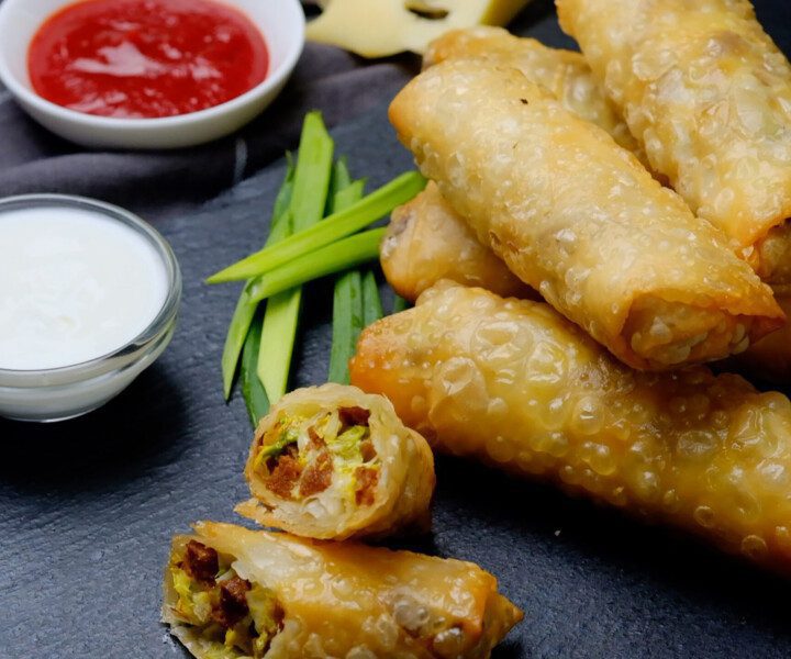 Fold forward, brush the remaining side with the egg white and seal it.Fry the egg rolls for a minute or two on each side until they turn golden brown.