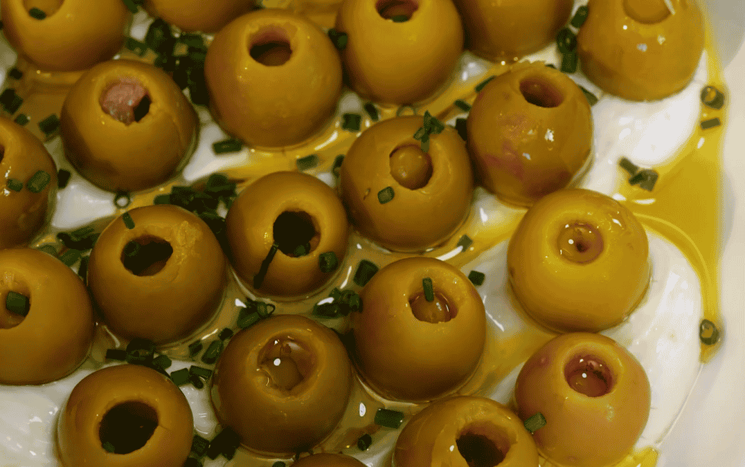 4. Arrange Iberia Anchovy Stuffed Olives on top.