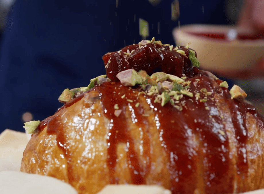 2. Top the Brie with Iberia Guava Paste and chopped pistachios.