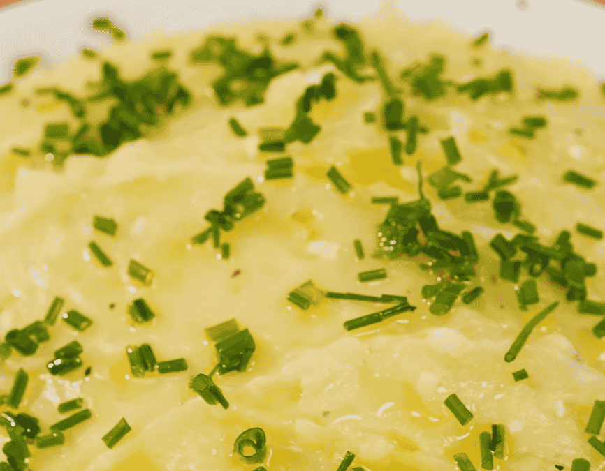 Gradually stir in warm milk to reach a creamy consistency. Drizzle in Iberia White Truffle Olive Oil, adjusting to taste.