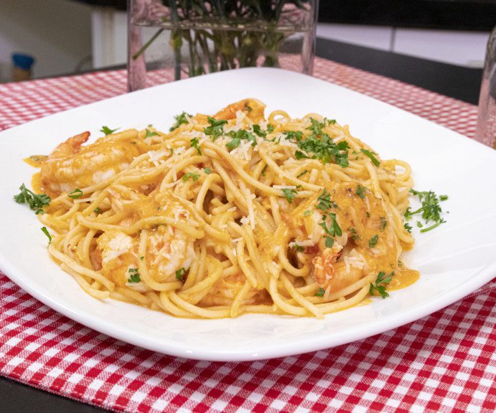 Add the pasta, mix well and let cook for a few more minutes Sprinkle grated Parmesan cheese on top and parsley.